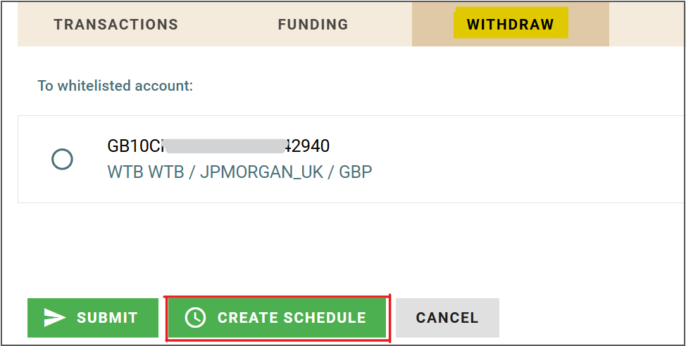 You can Withdraw funds as a one off, or you can withdraw at regular intervals through withdrawal scheduler.